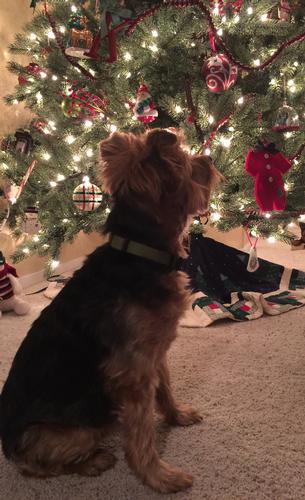 This year is the first time that i have put a lot of my time into photography. Both my brother and father have been taking photographs for years so i thought i might as well try it out. As time went by this year I have began to love the hobby of photography. My concentration for this year was of my dog Beau. Through my photographs I wanted to show the natural emotion of my Yorkshire Terrier. As I have been accumulating photos of my dog for my concentration, I noticed that i picked one of the harder subjects to photograph. This is good though because i really enjoy the challenge. It is difficult because my dog in particular is very camera shy so whenever a camera is pointing in his direction he just turns away. This can be frustrating but it can be solved simply by bribing the pooch with a treat. One of the photographs that I remember in particular that was was hard to capture was my photo called Holiday Magic. In this photo my dog Beau is sitting patiently at the bottom of our Christmas tree like a child would when waiting for Christmas day to arrive. My process for taking this photo started with me finding the perfect composition for the shot. As I found the right composition i then had to get the dog in the perfect position, and then here came the hard part. Trying to get Beau to look up at the tree. I try so many things to try to get him to sit still and look at the tree but in the end I had to bribe him with a slice of cheese so he would sit still for me during the picture. I then took the picture and edited it in Lightroom, I cropped it down a little then added a vignette. Also i had to play with the lighting so it wasn't to dark or to bright, and then I was finished.